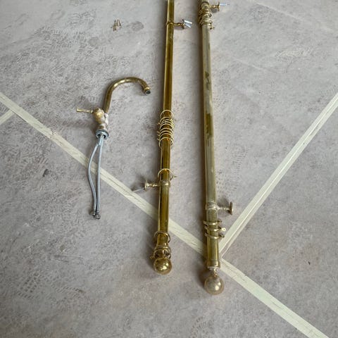 Säljer eleganta gardinstänger i mässing med dekorativa ändknoppar. Gedigen kvalitet och stilren, tidlös design som ger ett lyxigt intryck i rummet. Passar både vardagsrum och sovrum.