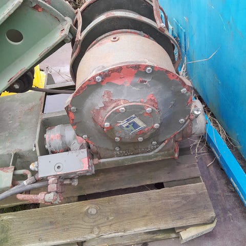 Vajervinch som förmodligen suttit på en lastbilskran eller nått.