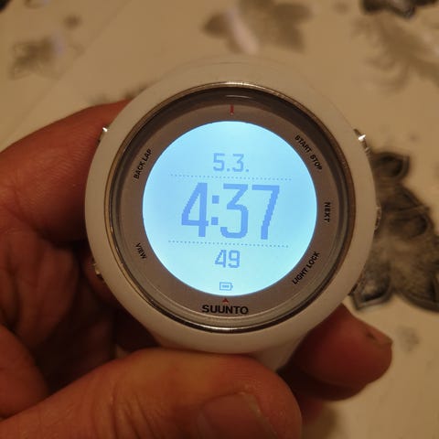 Sports GPS-klocka med svart armband och digital display. Klockan har funktioner för sport och GPS-spårning samt visar tid och andra mätvärden.