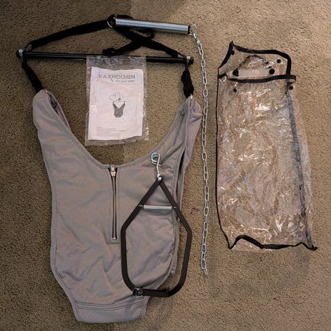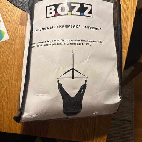 Svart hoppgunga med karmsax man hänger i dörröppningen. Från Kaxholmen. Sparsamt använd.