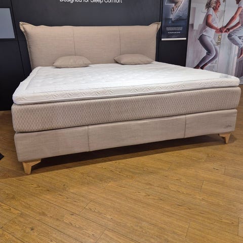 Jensen Supreme Ställbar säng 2 st 90x200 cm i komforterna Medium och Fast i Ljusgrått Supreme tyg. Bäddmadrass Starrose U-split 180x200 cm. Ben Triangel mattsvart. Huvudgavel Fenix Manor Tall. Sängen är en demonstrationssäng i vår butik på Natt & Co Backaplan. Nypris för hela sängpaketet är 129 812 kr