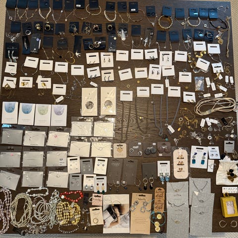 Total 5 lådor smycken inredningar varsamt använd säljes på grund av verksamheten upphör.