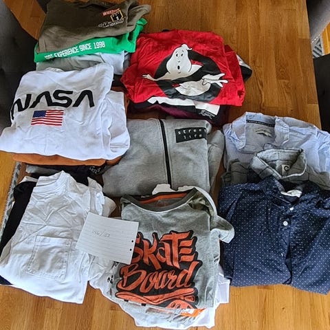 Byxor, jeans, tröjor, toppar , vårjackor, pyjamas.