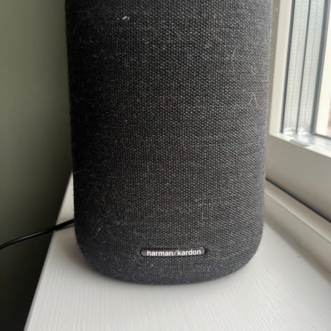 Harman Kardon Citation Tower högtalare med cylindrisk design och tygklädsel. Lämplig för ljudåtergivning i hemmiljö.