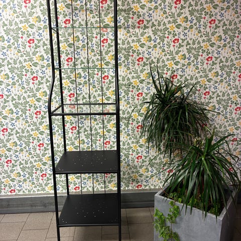 Vacker och dekorativ hylla i svart smide med romantiska detaljer och flera hyllplan. Perfekt för dig som gillar lantlig, rustik eller vintage stil.