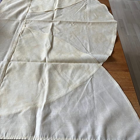 Cremevit/vit duk med fint diskret mönster, ca 224x140 cm.