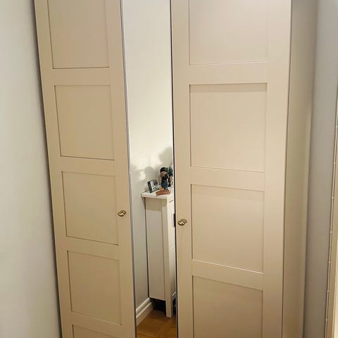 1 st 50x35x236 cm med 3 lådor, 2 hyllplan och klädhängare. 1 dörr Bergsbo med handtag.