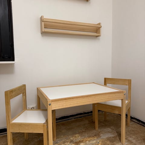 Möbelsetet är anpassat för barn och kan användas för olika aktiviteter som lek och måltider.
