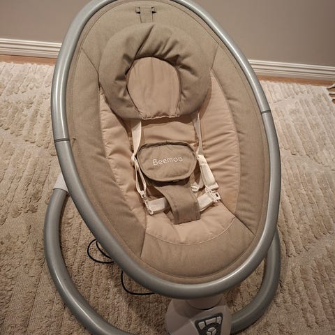 Elektrisk Babysitter/babygunga med tre gunghastigheter och åtta inbyggda naturljud och melodier som kan justeras i volym.