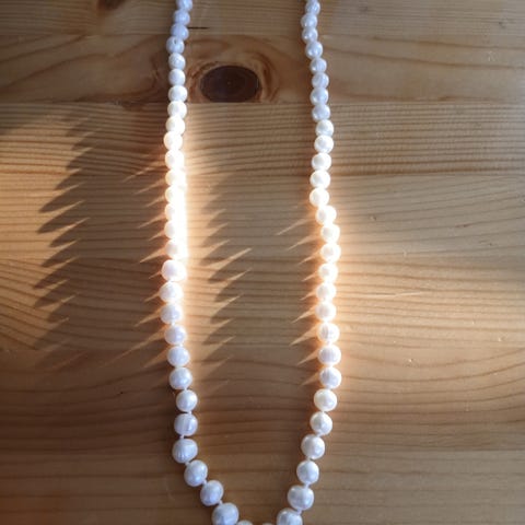 Säljer ett halsband av äkta och skimrande sötvattenspärlor. Längd: 48 cm Pärldiameter: ca 0,8 cm Praktiskt lås i vitguld doublé för enkel användning.