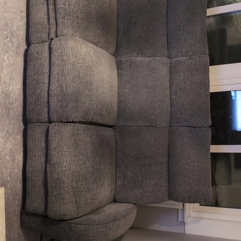 Elektrisk soffa med det två ändplatserna har elektriskt manövrerad steglös lutningsmekanism och inbyggt benstöd och ryggstöd. Armstödet på ena sidan har lossnat lite från själva soffan men går lätt att laga om man vill de men inget som märks och inget som stör. Finns även USB-uttag på båda sidor. Fungerar utmärkt och är väldigt skön.