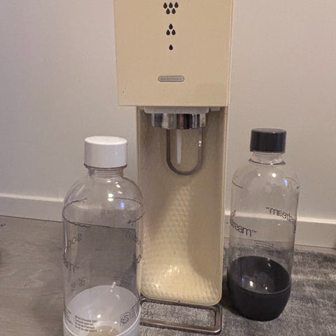 Sodastream kolsyremaskin i svart färg inkl. 3 flaskor och en kolsyrepatron som är tom och behöver fyllas på.