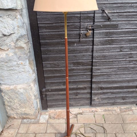 Trearmad golvlampa teak 60-tal