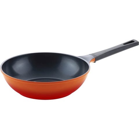 DELIMANO GREENPLANET wokpanna tillverkad av aluminium med keramik (nonstick-beläggning) helt ny OBS: bilderna med orange bakgrund är gjorda med den wokpanna jag själv använder. Jag säljer en helt ny wokpanna i originalförpackning (bilderna som inte har orange bakgrund) Övre del och lock Ø 32 cm, botten Ø 20 cm