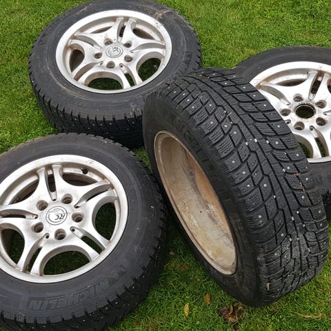 Säljer 4 dubbdäck med fälg som suttit på en BMW e61 2008, finns säkert andra modeller med samma mått