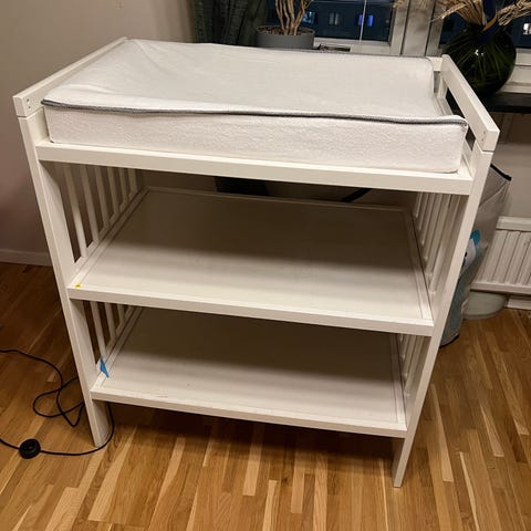 Baby vagga, babynest två olika, skötbädd, madrass till barnvagn, amningskudde och potta säljs för 400 kr.