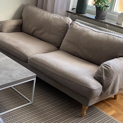 Howard soffa i ljusgrå från Sweef, 3-sits i rak modell. Avtagbar klädsel i linne- och bomullsblandning som går att tvätta i maskin. Tåligt och lättskött.