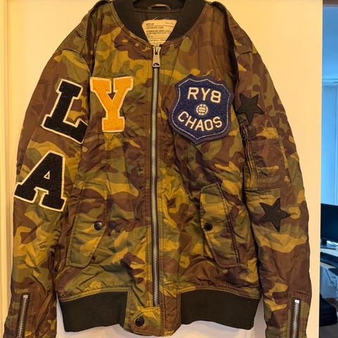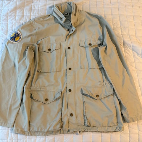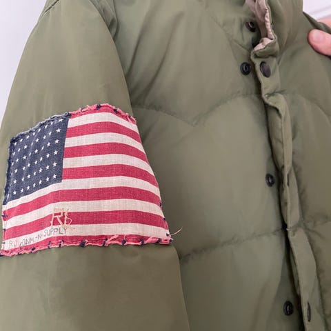 Ralph Lauren fieldjacka i storlek M, tillverkad av bomull. Jackan är grön och har flera detaljer såsom märken och flaggor på ärmarna.
