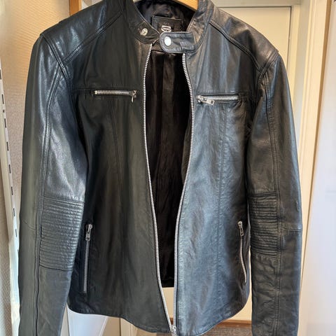 Crocker jacka i svart läder, storlek S för herr. Jackan är tillverkad av läder och är avsedd som ytterplagg för herrar.