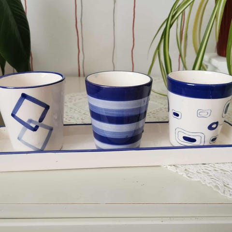 Kockums fat. Vitt med blå kant. Enstaka nagg.