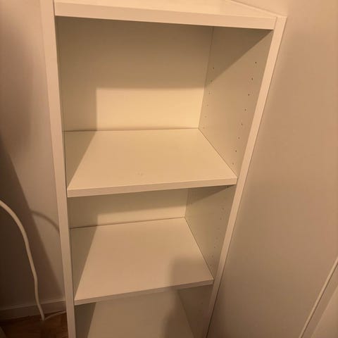 Selling an IKEA BILLY bookcase in white, about 80x28x202 cm with 4 shelves installed. The bookcase is in good used condition but has a small damage on the bottom right corner which is hard to notice once placed. It holds plenty of books and storage and the adjustable shelves make it easy to adapt to your needs. Pickup only in Gothenburg.
