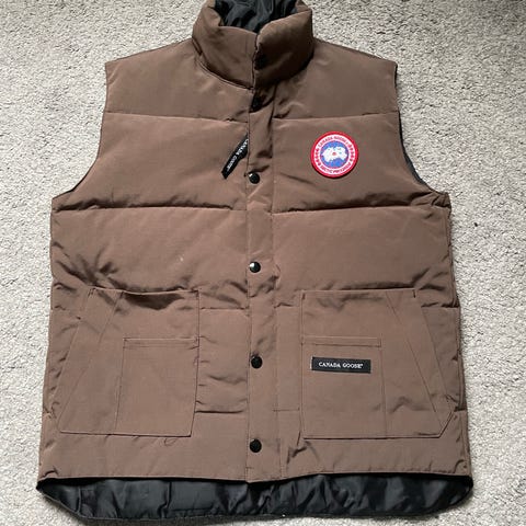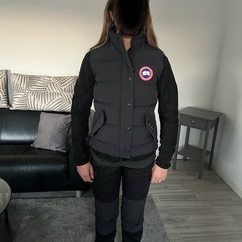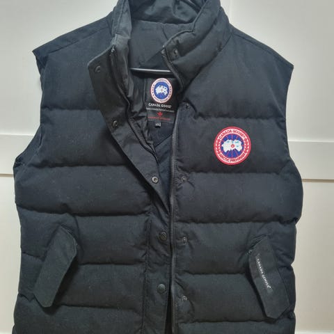 Canada Goose Väst i storlek XXS för kvinnor. Västen är svart och tillverkad i dun, vilket ger isolering och värme. Passar för utomhusbruk och kan användas som ett lagerplagg under kallare dagar.