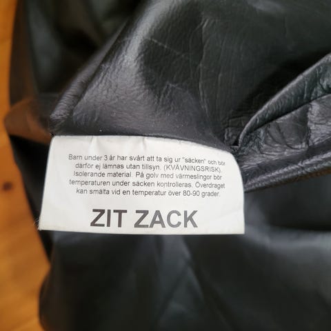 Säckens fyllning består av strimlat skum som formar sig efter kroppen, men som återfår sin ursprungliga form när ingen sitter i möbeln. Yttermaterialet är ett 600D Oxford-nylon som är både slitstarkt och vattentåligt, vilket gör att sittsäcken även går att använda utomhus.