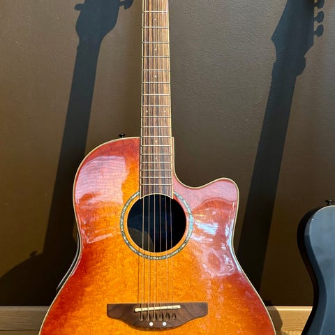 Säljer min Ovation CS28P-RG Celebrity Standard Plus, en elektroakustisk gitarr med Ovations klassiska rundade baksida (super shallow body) som är väldigt bekväm att spela på, både sittande och stående med band.