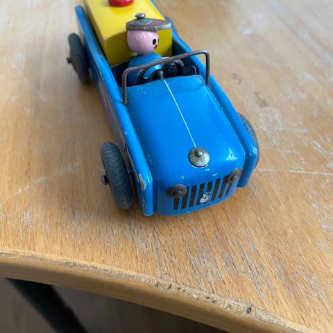 En Fozzie Bear Truck: En röd diecast-leksaksbil med Fozzie Bear bakom ratten, tillverkad av Corgi.