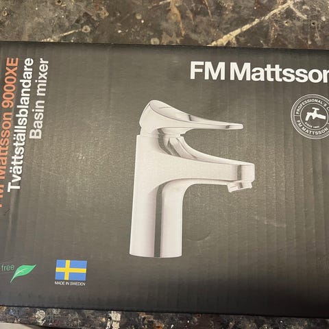 Säljer en helt ny, tvättställsblandare från FM Mattsson. Beställde flera olika alternativ till badrummet och denna blev helt enkelt liggande och aldrig monterad.