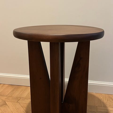 Säljer en DD Rattan Weave Mirror Small, en halvkroppsspegel från det svenska varumärket Dusty Deco. Spegeln har en oktagon-formad ram av massiv bok, med inlägg av vävd rotting.