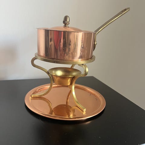 Glöggryta i flintgods med lock och sked, formgiven av Anita Nylund för Jie Gantofta i Sverige på 1950-talet.