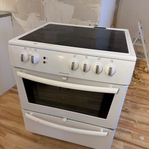 Varmluftsugn, 60 cm, 400 Volt, inköpt 2019. Två djupa plåtar, en grund plåt och ett galler.