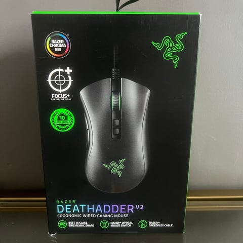 Razer DeathAdder Elite datormus i svart färg. En sladdansluten mus med optisk sensor, avsedd för datoranvändning.