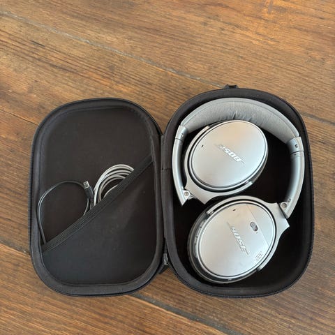 Bose QuietComfort 35 II hörlurar i svart färg. Trådlösa over-ear-hörlurar med fantastisk brusreducering, tar bort kabinbruset i flyg. Levereras med laddningskabel, ljudkabel, adapter och förvaringsetui.