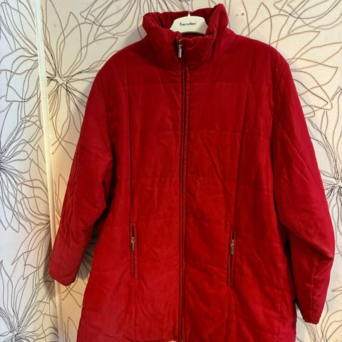 Cubus Övriga ytterkläder för dam i storlek L. Jackan är grå och tillverkad i polyester. Den har en vadderad design och huva, lämpad för kallare väder. Tyvärr saknas bältet