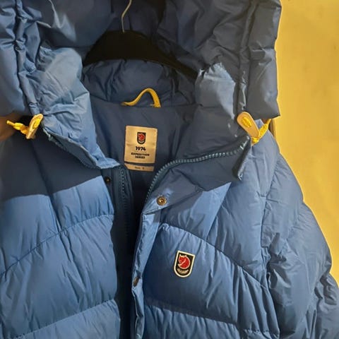 Fjällräven Expedition vinterjacka i storlek M, svart färg och tillverkad av dunmaterial.