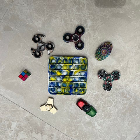 Fidget-leksaker, rubikskuber, fidgetspinners