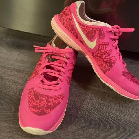 Nike träningsskor i storlek 41 /26cm fast känns lite mindre. De är i helt okej använt skick. Skorna har mer att ge, tyvärr för små för mig.
