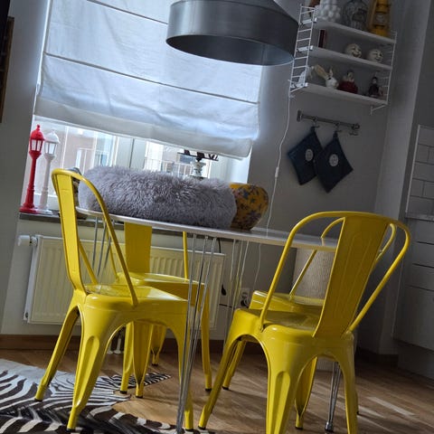 Matgrupp modell Axet med 4 stolar och bord. Iläggsskiva finns ej.