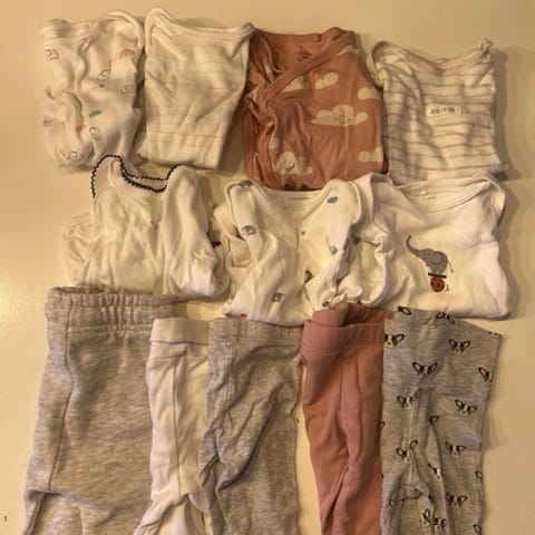Paketet innehåller 5 st byxor, 3 kortärmade och 5 långärmade bodies