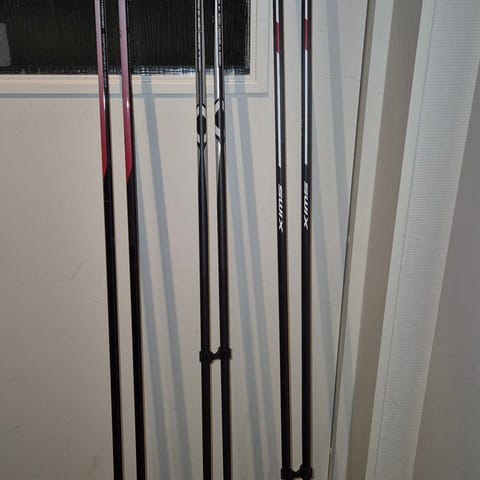Fischer RC9 kolfiberstavar med Fishers skruvtrugor ”Multi Tip” lätt att byta trugor så passar perfekt för rullskidor.