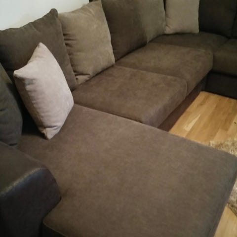 Boolia Hörnsoffa i jättefint skick med eleganta ben, djur och rökfri. Nypris ca 35000:-