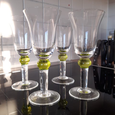 &Tradition glas med blommotiv, 6 st. Varje glas har unika handmålade blommor i olika färger på foten och kupan. Glasen är av klarglas och passar för servering av drycker eller glass. Passar för användning vid middagar och sociala tillfällen.