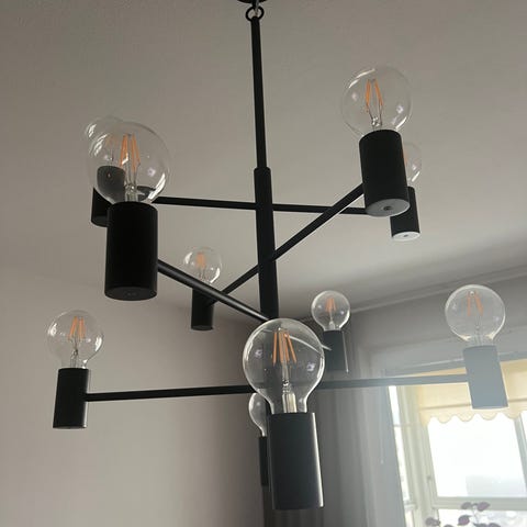 Snygg och modern taklampa i matt svart metall med sex armar.