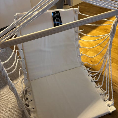Jag köpde den här gungen, men jag har aldrig använd den för att jag inte fick upp den i balkongen. Och på grund av flytt måste jag sälja den.