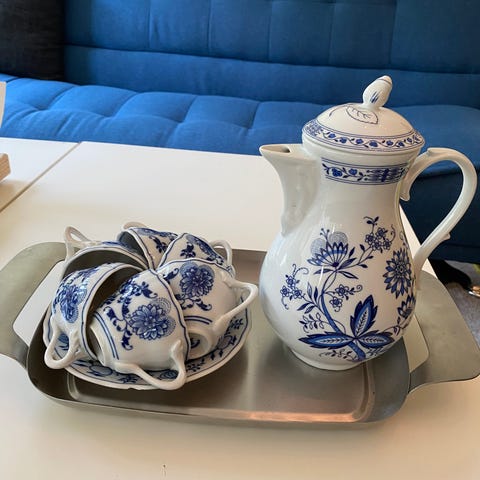 Set med små skålar i keramik med marmormönster