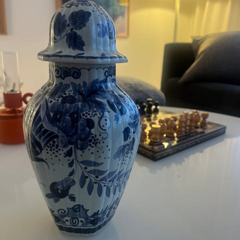 Vas med höjd 23 cm, med tillhörande lock