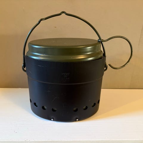 Vill ni ha det äldsta och coolaste campingköket nånsin? Kolla in denna relik! Inte UL och inte ihopfällbart men fungerande. Jag tror att man kan byta till liten patron, men man kanske får ta bort ställningen...