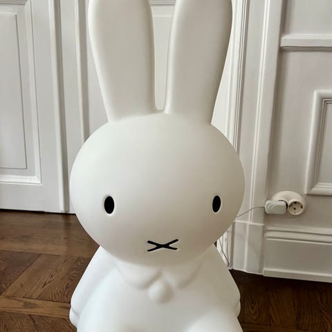 Den här stora Miffy-lampan från Mr Maria är en häftig figurlampa att ha i barnrummet, eller i något av hemmets andra rum. Lampan är tillverkad i vit, tålig och hållbar plast och har ett varmt, mjukt sken som ger en harmonisk och mysig stämning. Lampan kommer med en USB-kabel med adapter, och kan med en touchdimmer justeras i sex olika steg, inklusive nightmode, för att ge ett behagligt ljus anpassat efter omgivningen. Nightmode är ett mycket svagt sken som kan lämnas på över natten.
